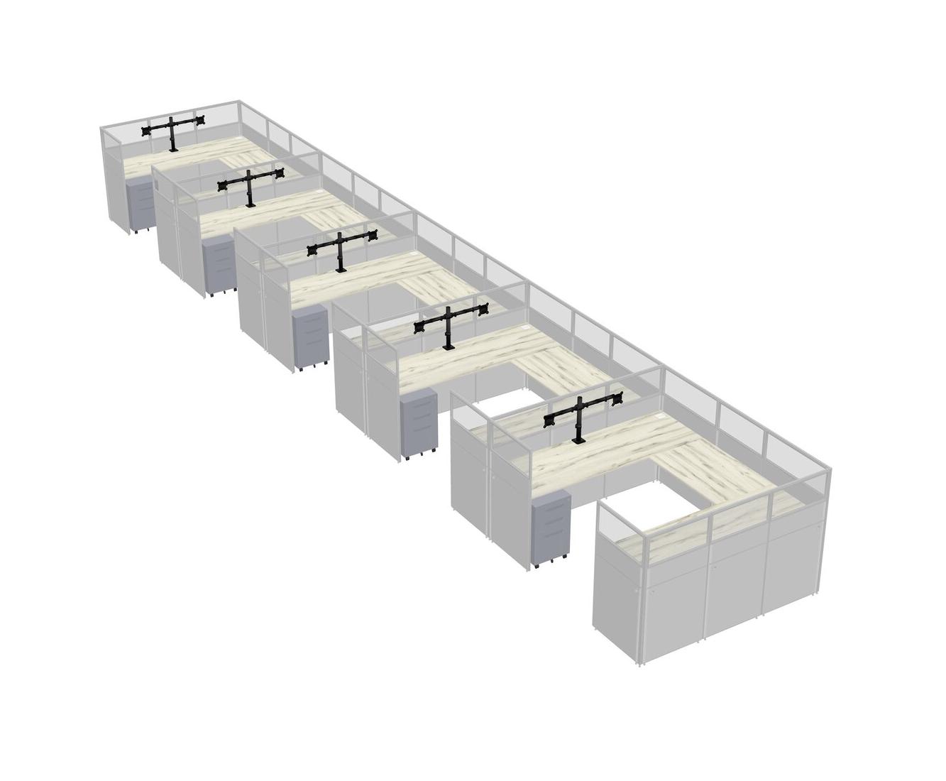 Heinne Holz U-shaped Panel System For 5 Person + Monitor Arm (double Arms) + Metal Mobile Drawers For 5 User(s)