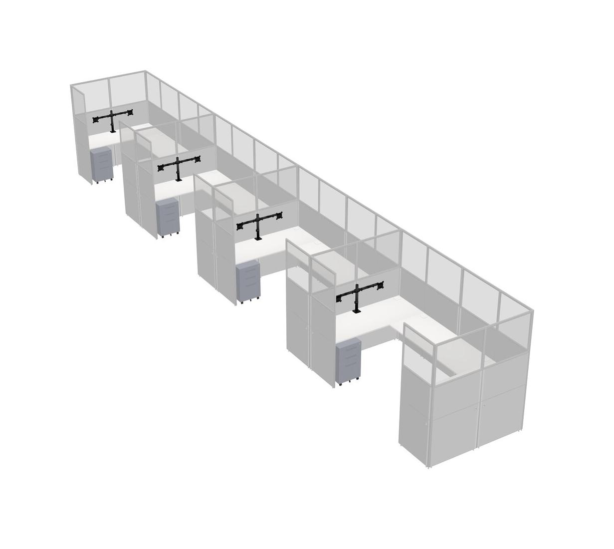 White U-shaped Panel System For 4 Person + Monitor Arm (double Arms) + Metal Mobile Drawers For 4 User(s)