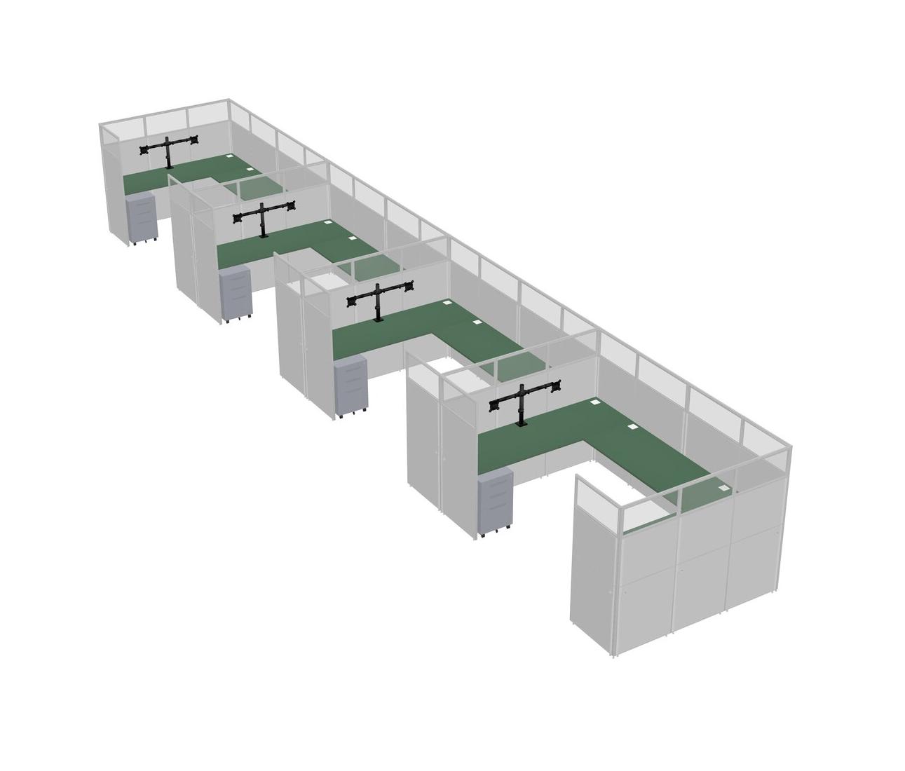 Green U-shaped Panel System For 4 Person + Monitor Arm (double Arms) + Metal Mobile Drawers For 4 User(s)