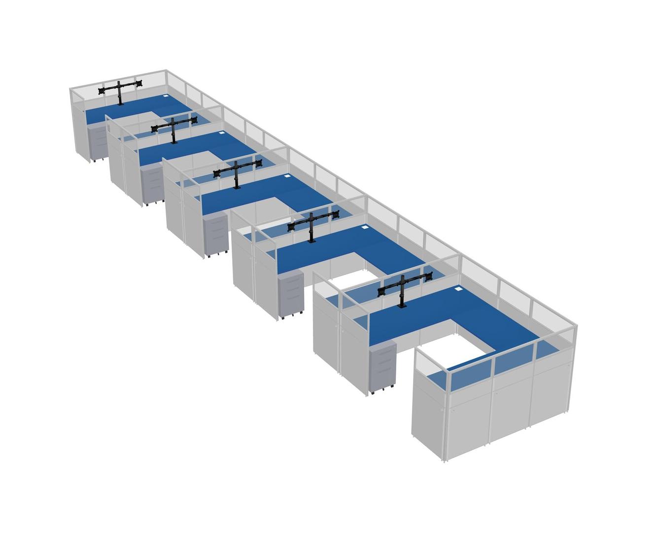 Prism Blue U-shaped Panel System For 5 Person + Monitor Arm (double Arms) + Metal Mobile Drawers For 5 User(s)