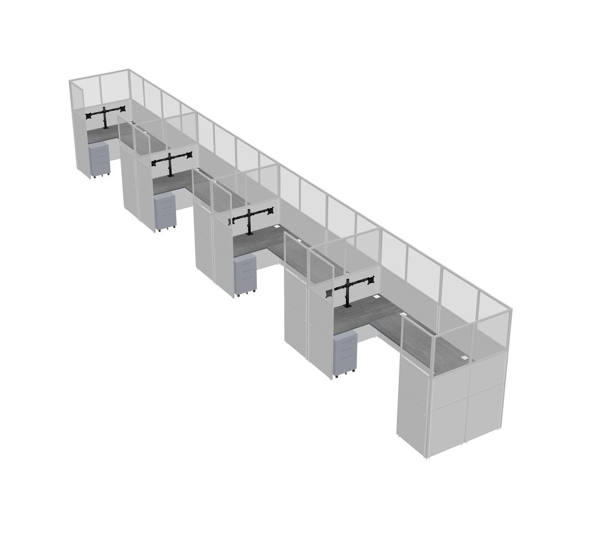 Grey U-shaped Panel System For 4 Person + Monitor Arm (double Arms) + Metal Mobile Drawers For 4 User(s)