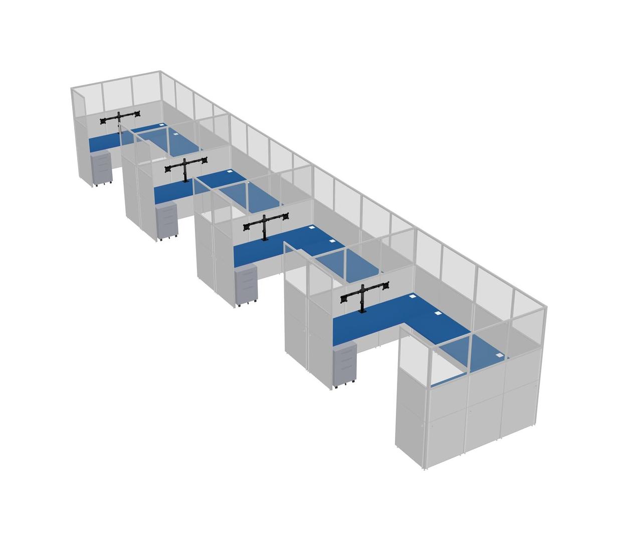 Prism Blue U-shaped Panel System For 4 Person + Monitor Arm (double Arms) + Metal Mobile Drawers For 4 User(s)