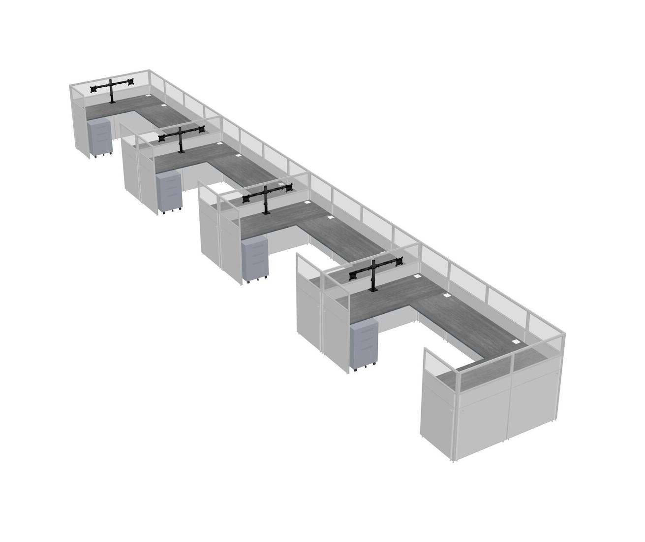 Grey U-shaped Panel System For 4 Person + Monitor Arm (double Arms) + Metal Mobile Drawers For 4 User(s)