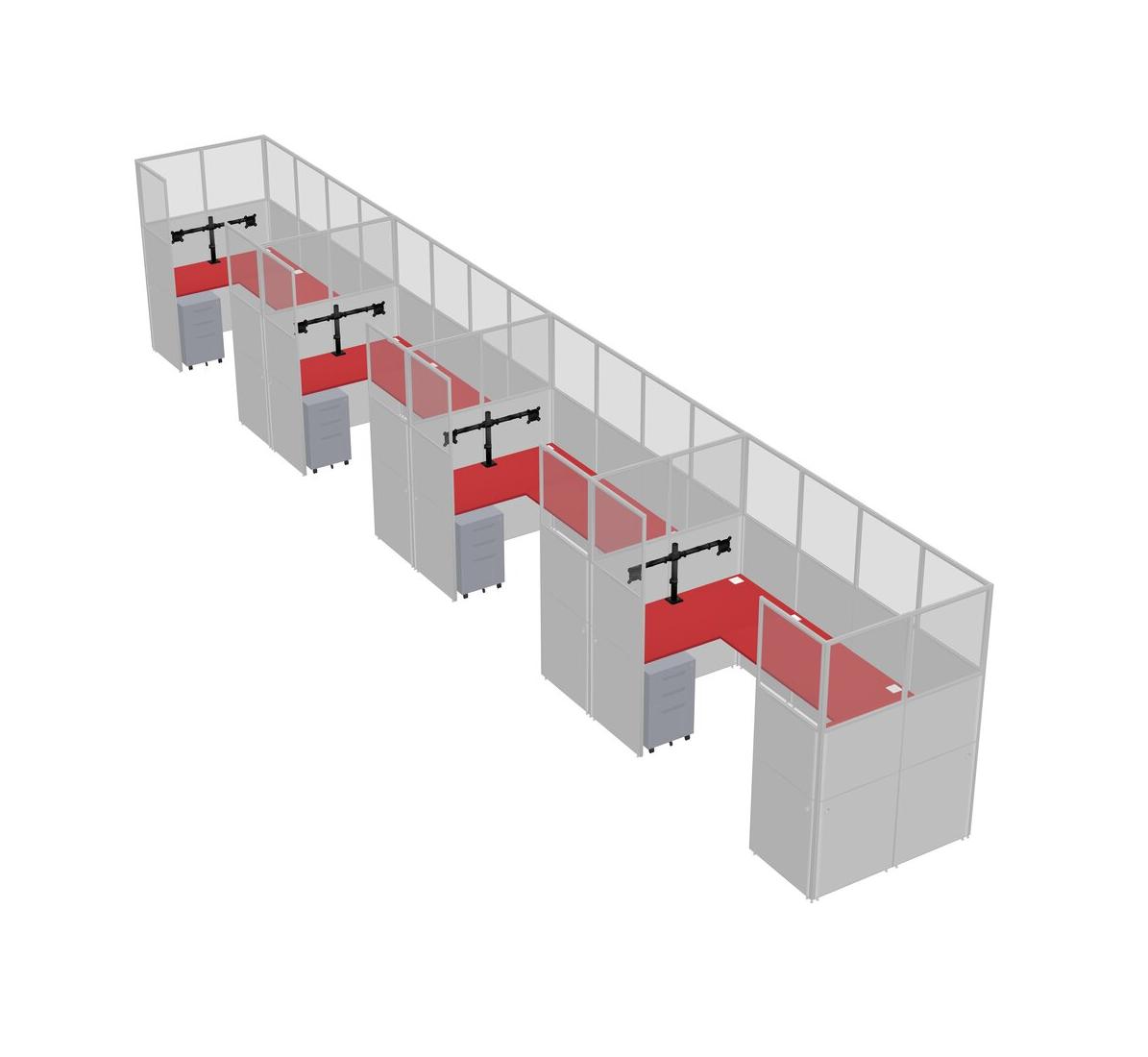 Prism Red U-shaped Panel System For 4 Person + Monitor Arm (double Arms) + Metal Mobile Drawers For 4 User(s)