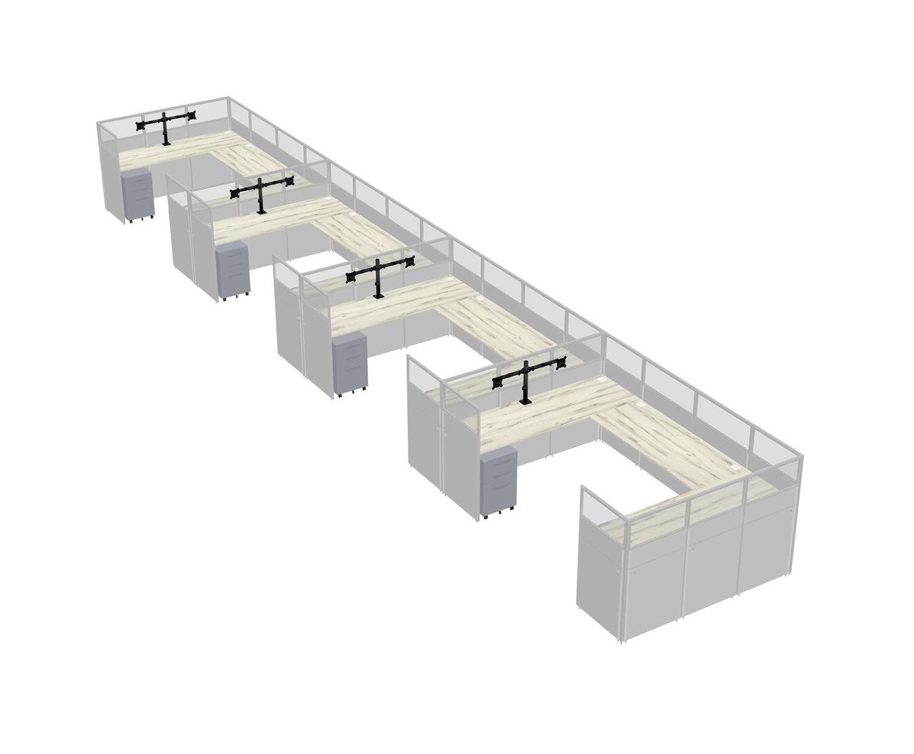 Heinne Holz U-shaped Panel System For 4 Person + Monitor Arm (double Arms) + Metal Mobile Drawers For 4 User(s)