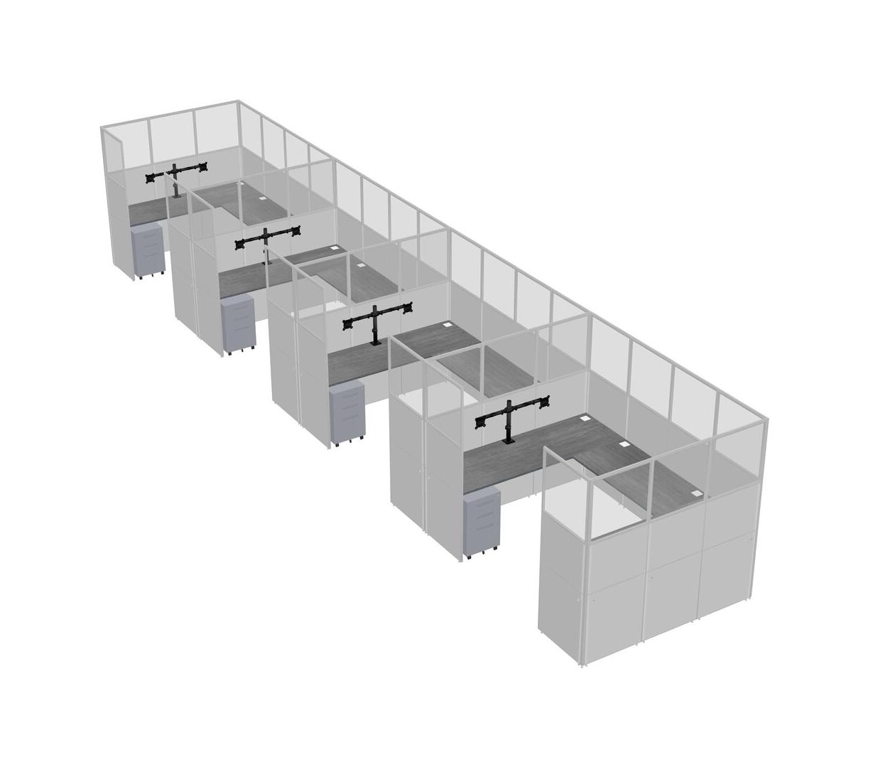 Grey U-shaped Panel System For 4 Person + Monitor Arm (double Arms) + Metal Mobile Drawers For 4 User(s)