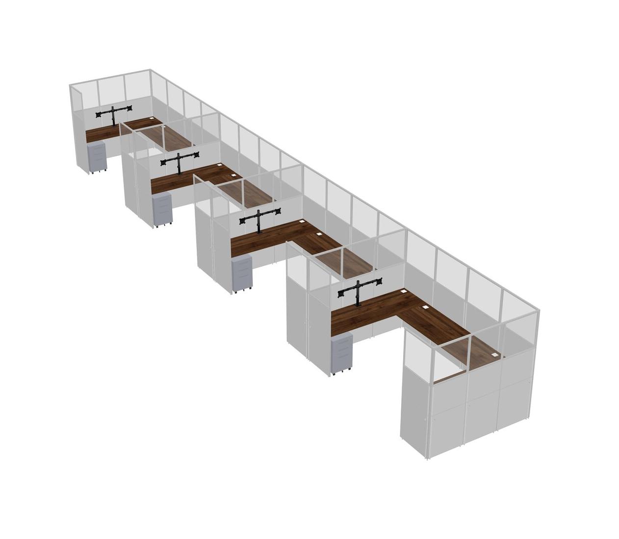 Columbia Walnut U-shaped Panel System For 4 Person + Monitor Arm (double Arms) + Metal Mobile Drawers For 4 User(s)