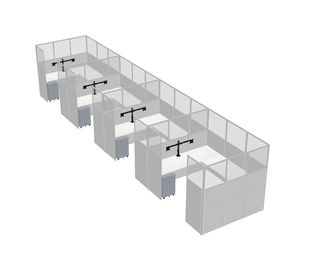 White U-shaped Panel System For 4 Person + Monitor Arm (double Arms) + Metal Mobile Drawers For 4 User(s)