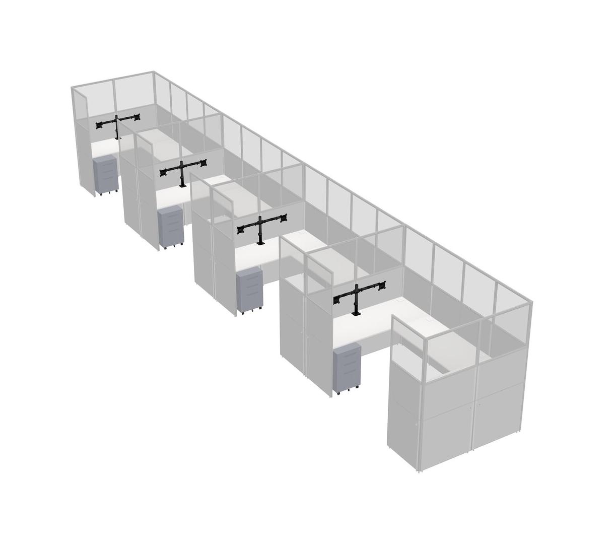 White U-shaped Panel System For 4 Person + Monitor Arm (double Arms) + Metal Mobile Drawers For 4 User(s)
