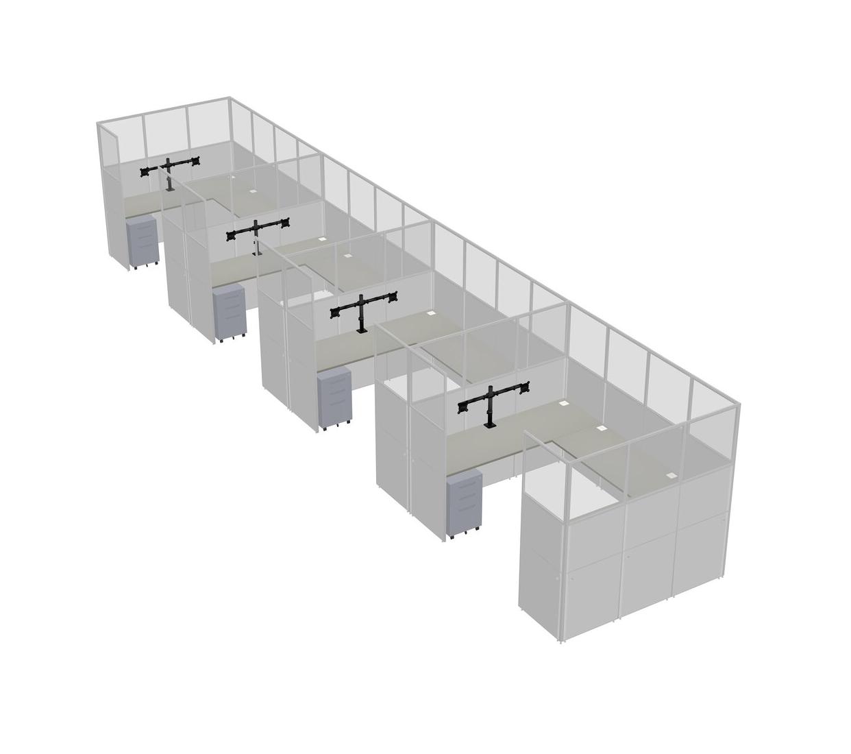 Grey Shadows U-shaped Panel System For 4 Person + Monitor Arm (double Arms) + Metal Mobile Drawers For 4 User(s)