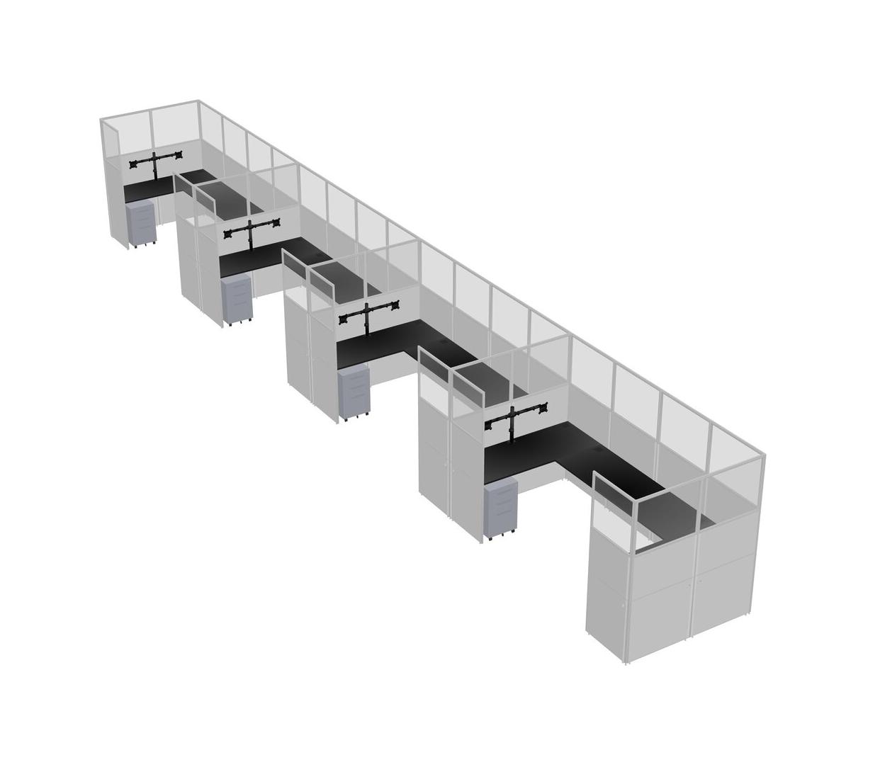 Black U-shaped Panel System For 4 Person + Monitor Arm (double Arms) + Metal Mobile Drawers For 4 User(s)