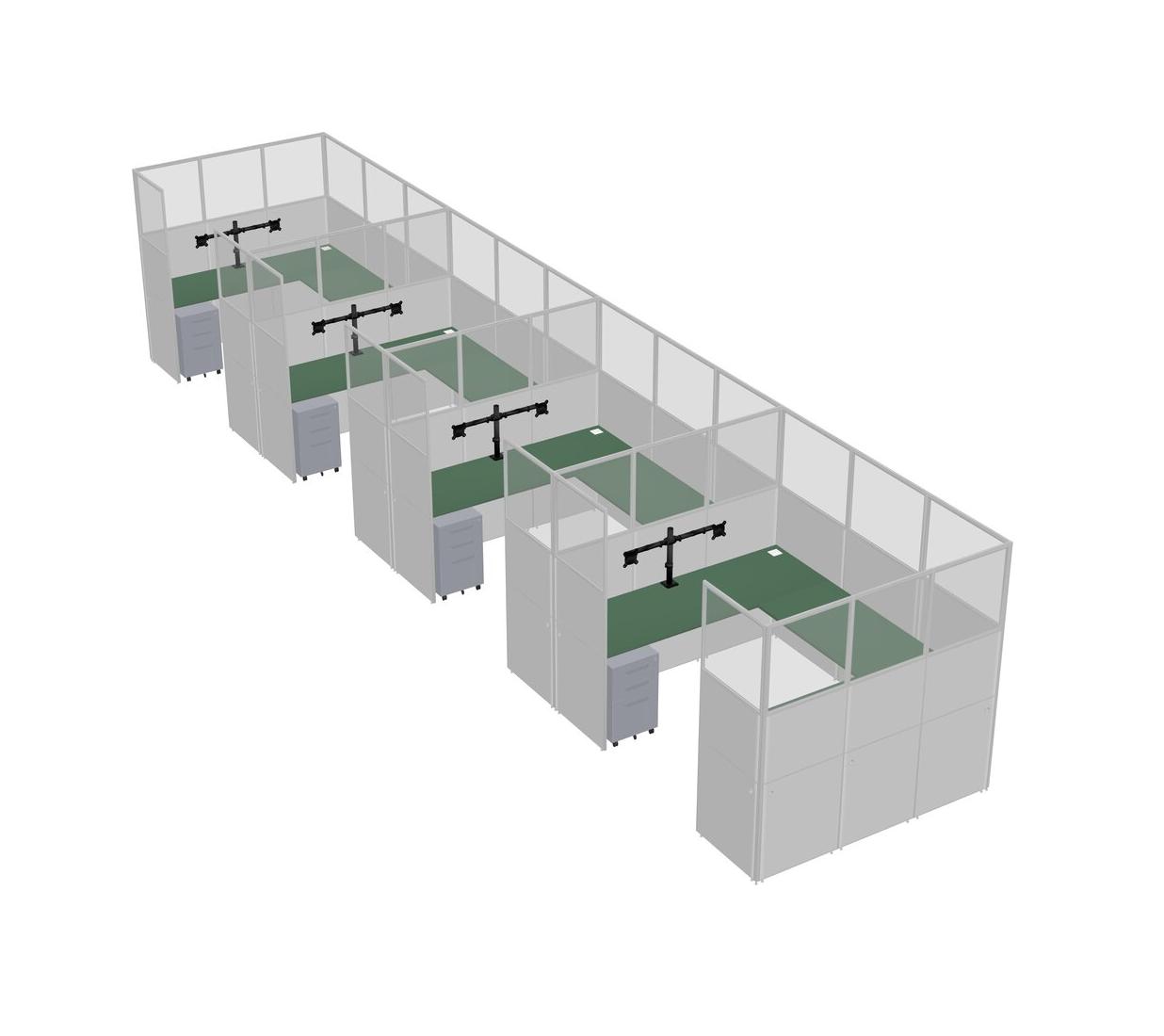 Green U-shaped Panel System For 4 Person + Monitor Arm (double Arms) + Metal Mobile Drawers For 4 User(s)
