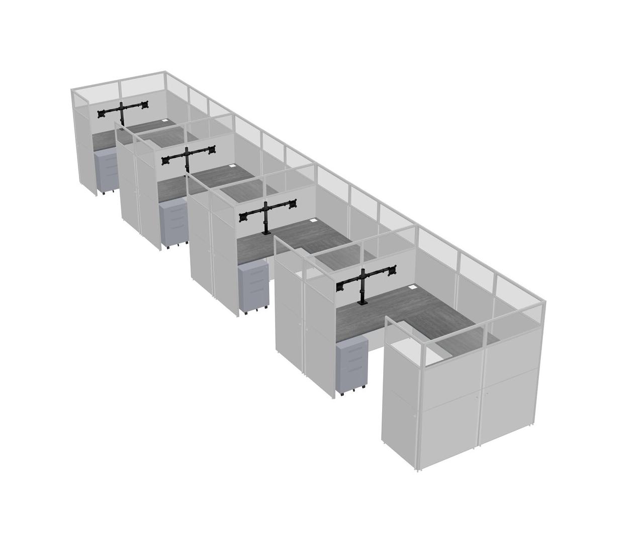 Grey U-shaped Panel System For 4 Person + Monitor Arm (double Arms) + Metal Mobile Drawers For 4 User(s)