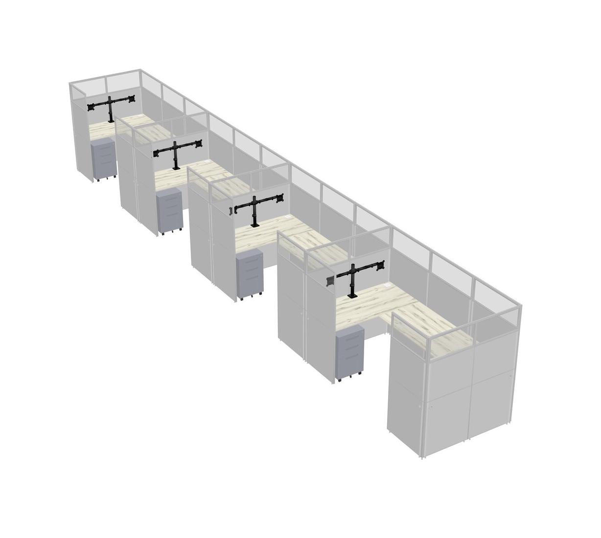 Heinne Holz U-shaped Panel System For 4 Person + Monitor Arm (double Arms) + Metal Mobile Drawers For 4 User(s)
