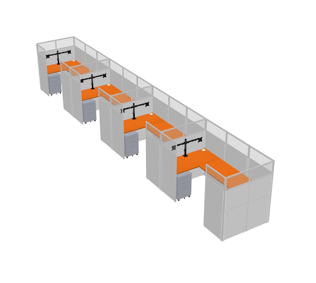 Orange U-shaped Panel System For 4 Person + Monitor Arm (double Arms) + Metal Mobile Drawers For 4 User(s)