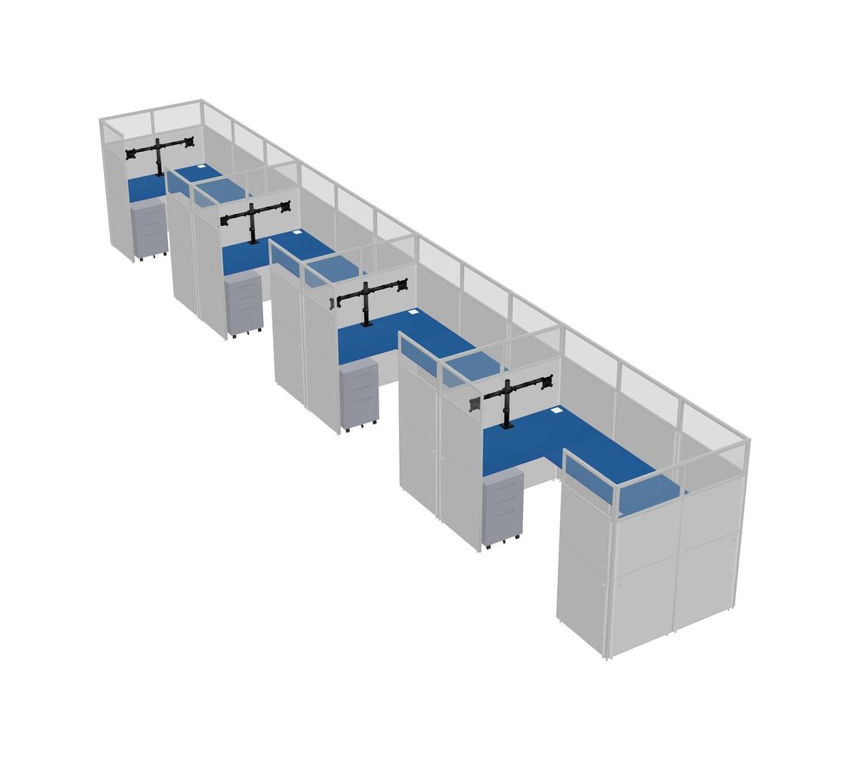Prism Blue U-shaped Panel System For 4 Person + Monitor Arm (double Arms) + Metal Mobile Drawers For 4 User(s)