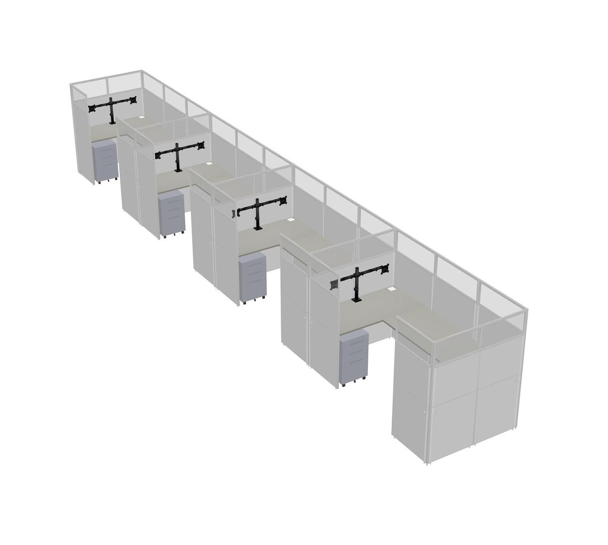 Grey Shadows U-shaped Panel System For 4 Person + Monitor Arm (double Arms) + Metal Mobile Drawers For 4 User(s)