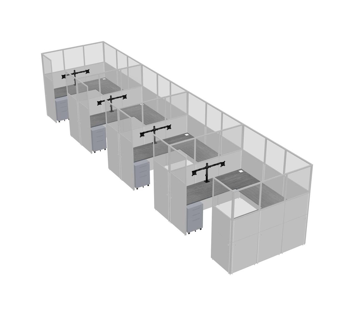 Grey U-shaped Panel System For 4 Person + Monitor Arm (double Arms) + Metal Mobile Drawers For 4 User(s)