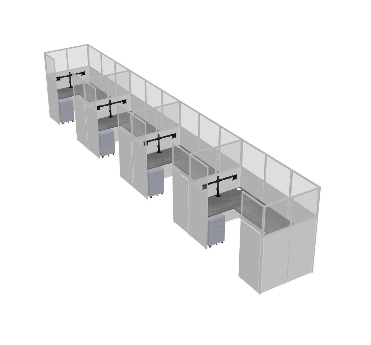 Grey U-shaped Panel System For 4 Person + Monitor Arm (double Arms) + Metal Mobile Drawers For 4 User(s)
