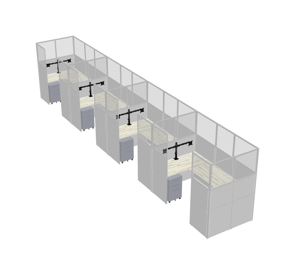 Heinne Holz U-shaped Panel System For 4 Person + Monitor Arm (double Arms) + Metal Mobile Drawers For 4 User(s)
