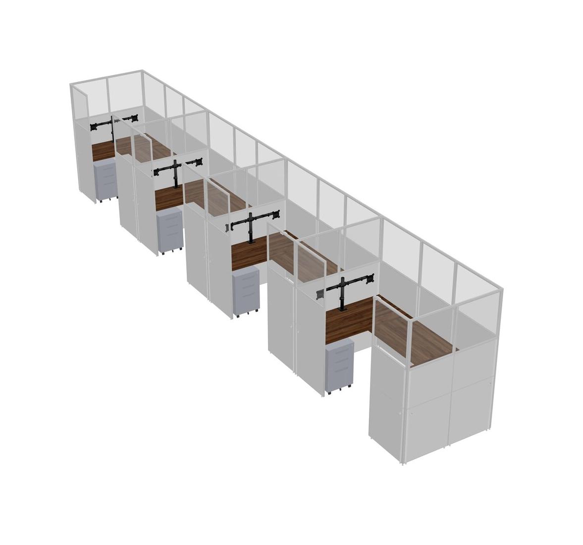 Columbia Walnut U-shaped Panel System For 4 Person + Monitor Arm (double Arms) + Metal Mobile Drawers For 4 User(s)