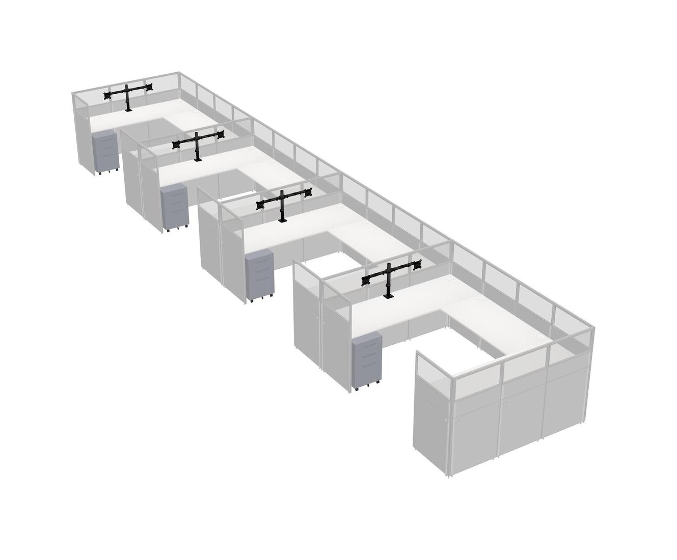 White U-shaped Panel System For 4 Person + Monitor Arm (double Arms) + Metal Mobile Drawers For 4 User(s)