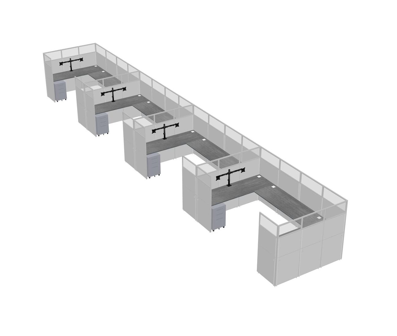 Grey U-shaped Panel System For 4 Person + Monitor Arm (double Arms) + Metal Mobile Drawers For 4 User(s)