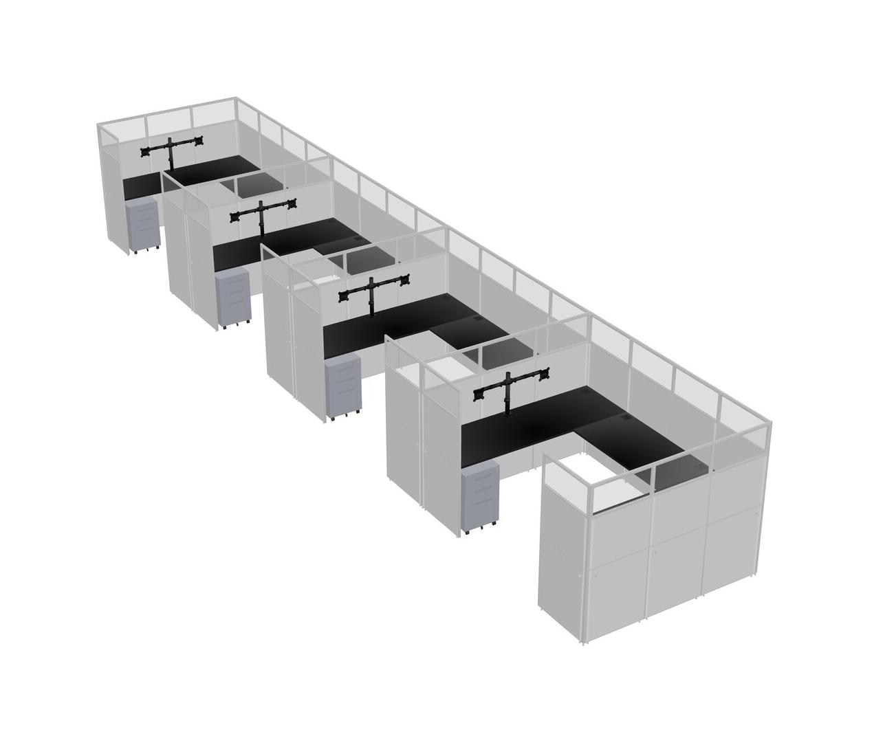 Black U-shaped Panel System For 4 Person + Monitor Arm (double Arms) + Metal Mobile Drawers For 4 User(s)