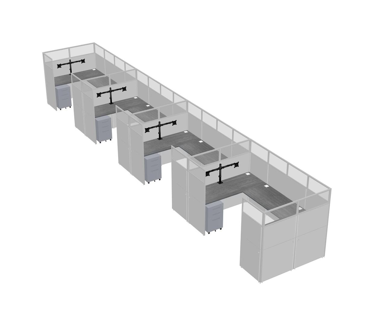 Grey U-shaped Panel System For 4 Person + Monitor Arm (double Arms) + Metal Mobile Drawers For 4 User(s)