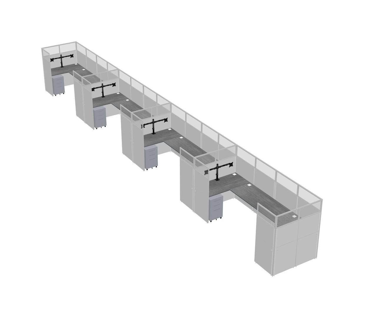 Grey U-shaped Panel System For 4 Person + Monitor Arm (double Arms) + Metal Mobile Drawers For 4 User(s)