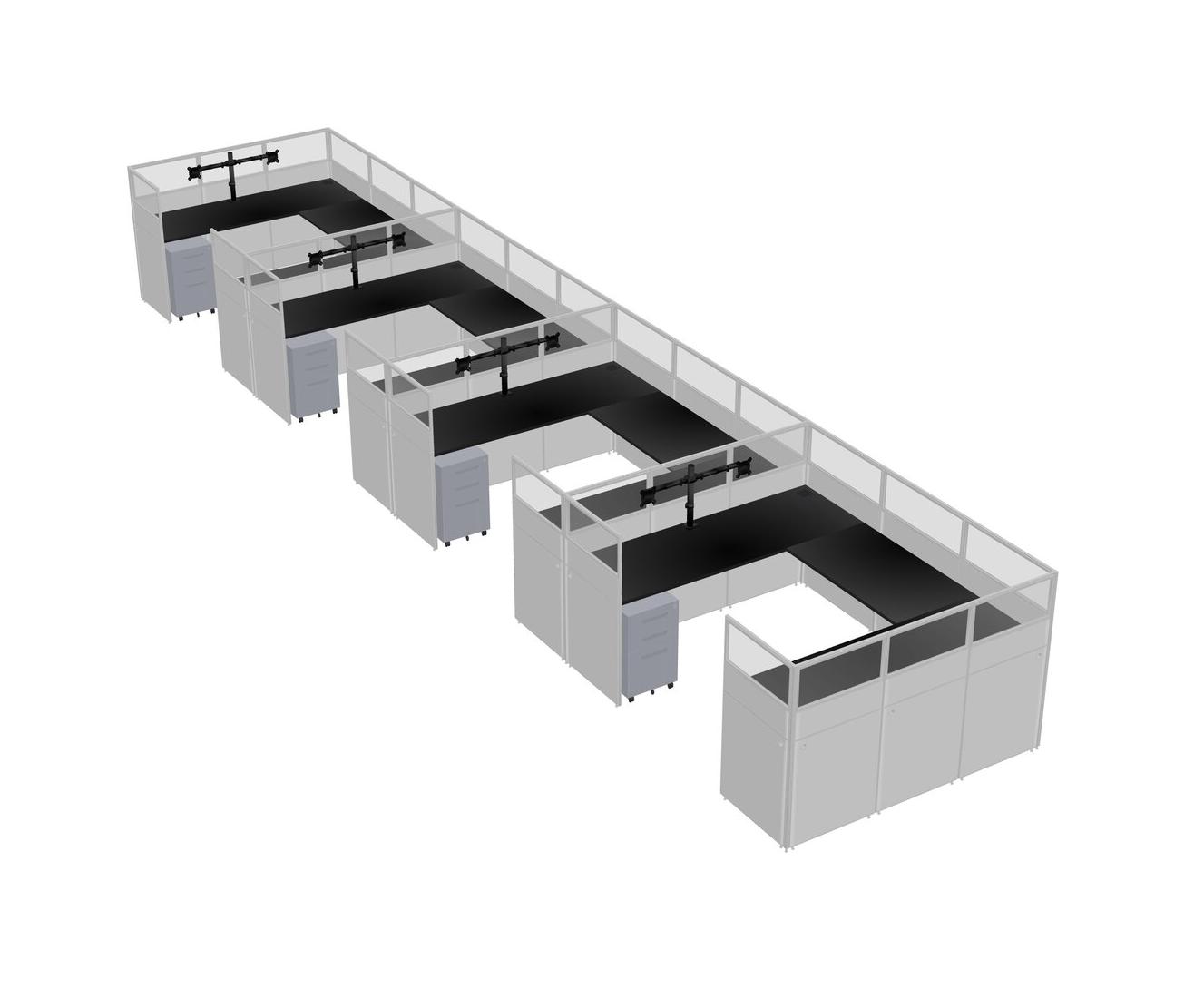 Black U-shaped Panel System For 4 Person + Monitor Arm (double Arms) + Metal Mobile Drawers For 4 User(s)