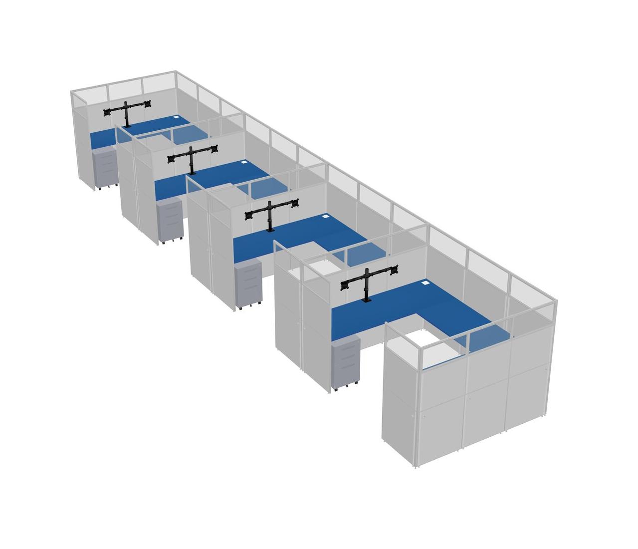 Prism Blue U-shaped Panel System For 4 Person + Monitor Arm (double Arms) + Metal Mobile Drawers For 4 User(s)