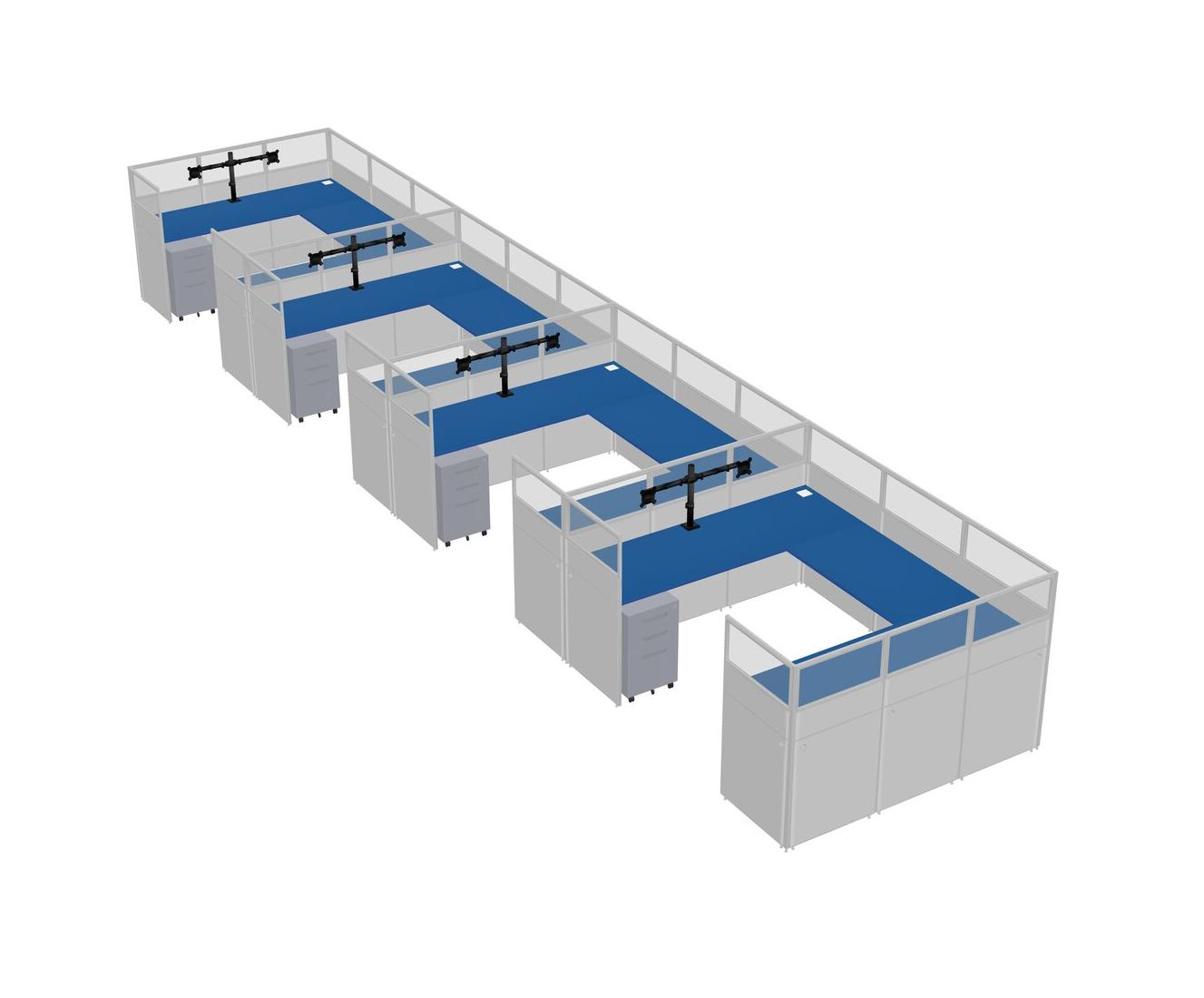 Prism Blue U-shaped Panel System For 4 Person + Monitor Arm (double Arms) + Metal Mobile Drawers For 4 User(s)