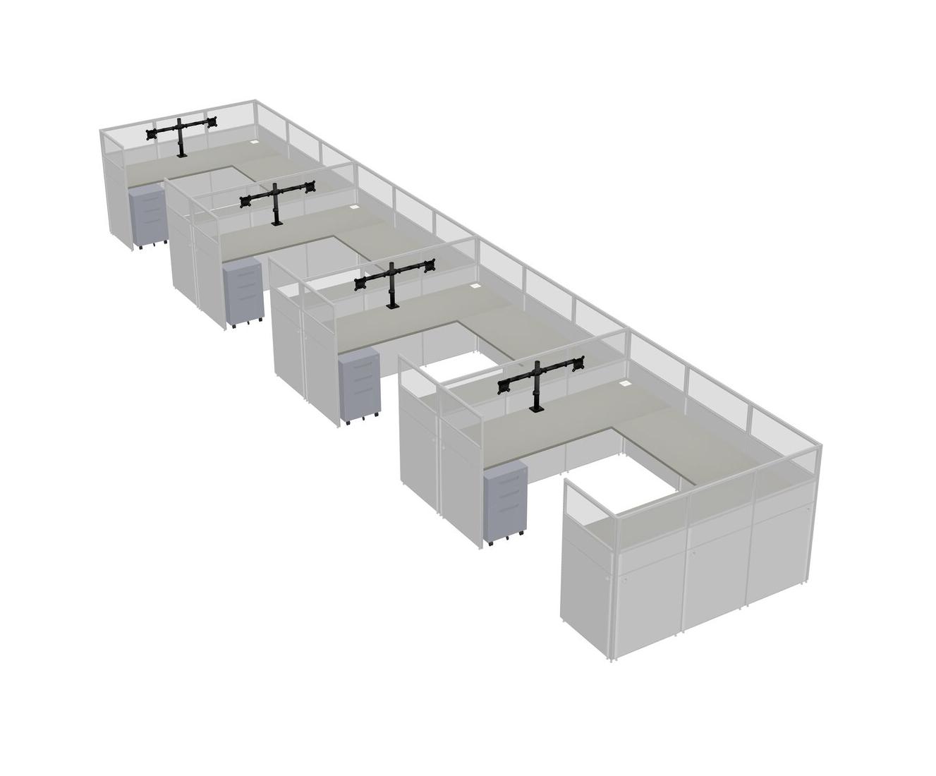 Grey Shadows U-shaped Panel System For 4 Person + Monitor Arm (double Arms) + Metal Mobile Drawers For 4 User(s)