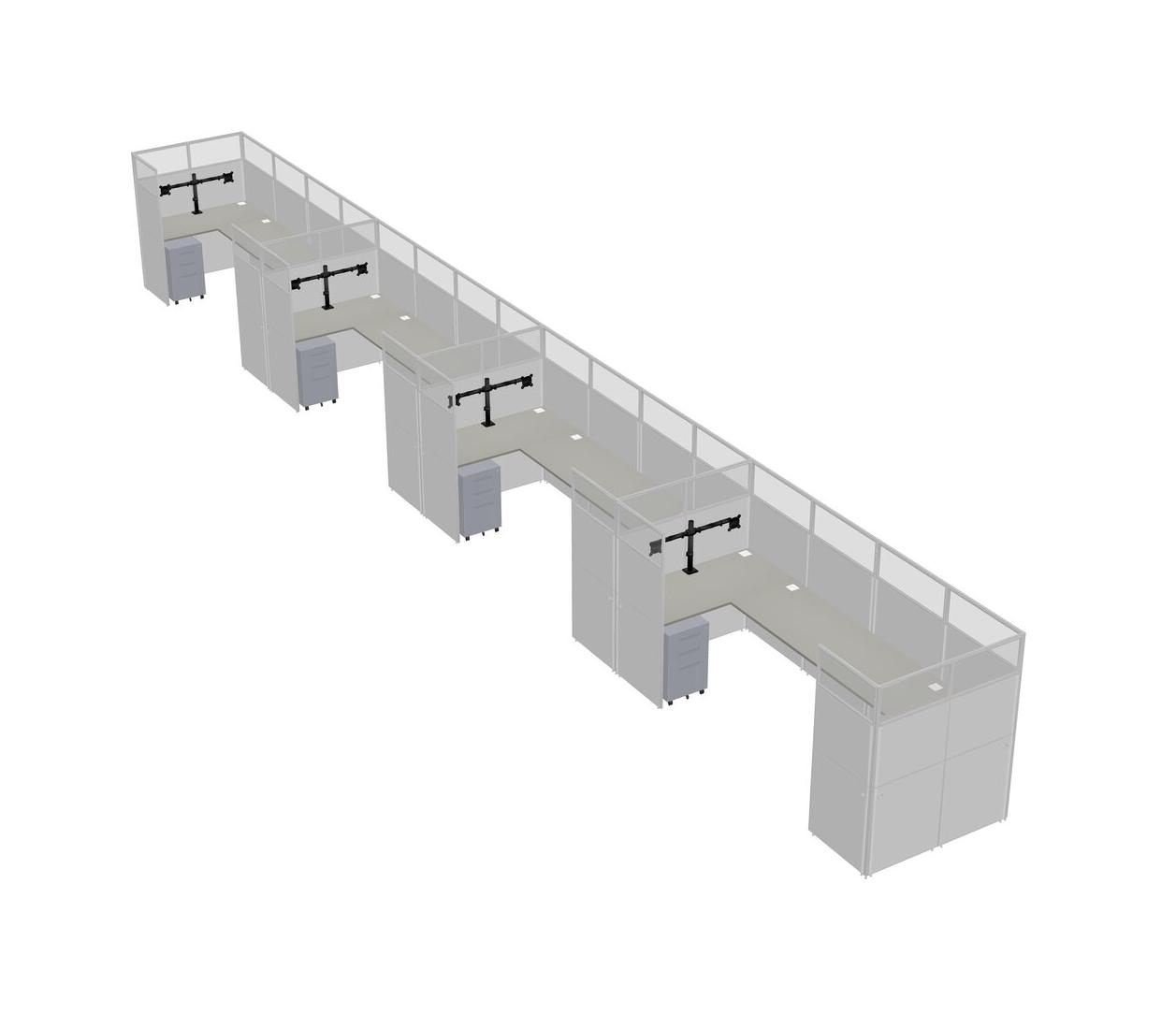 Grey Shadows U-shaped Panel System For 4 Person + Monitor Arm (double Arms) + Metal Mobile Drawers For 4 User(s)
