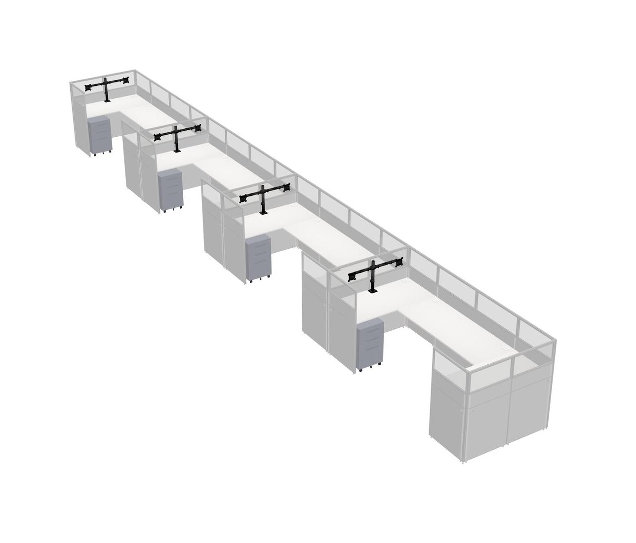 White U-shaped Panel System For 4 Person + Monitor Arm (double Arms) + Metal Mobile Drawers For 4 User(s)