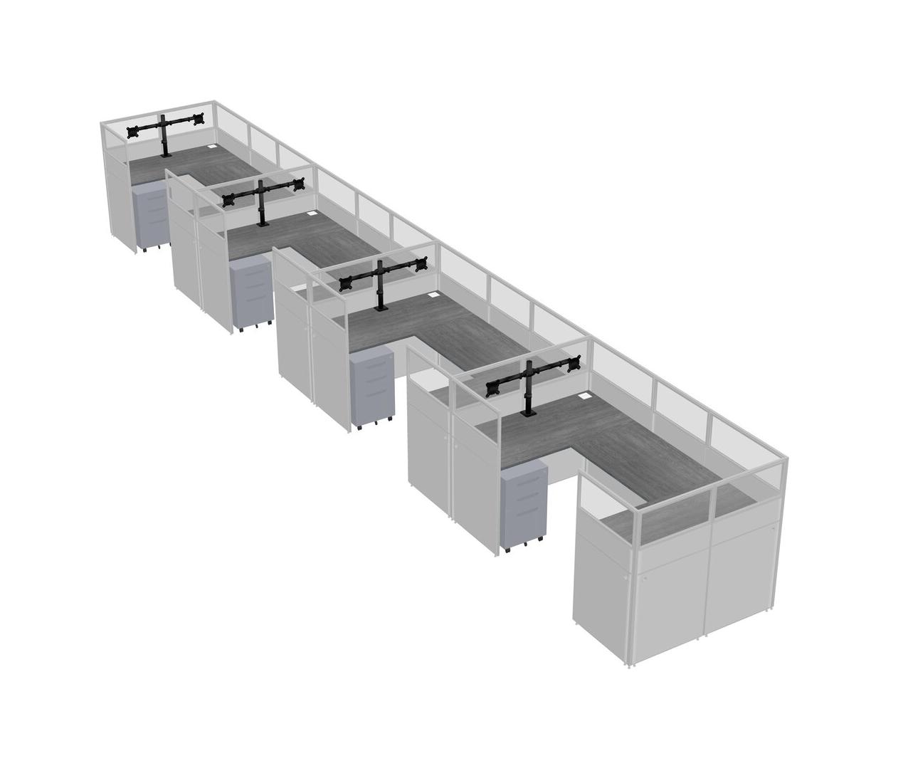 Grey U-shaped Panel System For 4 Person + Monitor Arm (double Arms) + Metal Mobile Drawers For 4 User(s)
