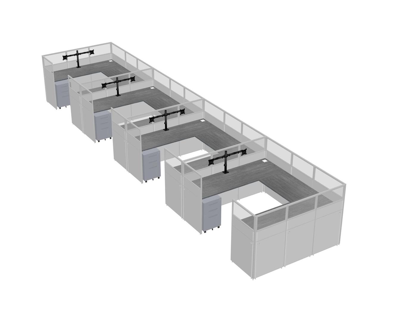 Grey U-shaped Panel System For 4 Person + Monitor Arm (double Arms) + Metal Mobile Drawers For 4 User(s)