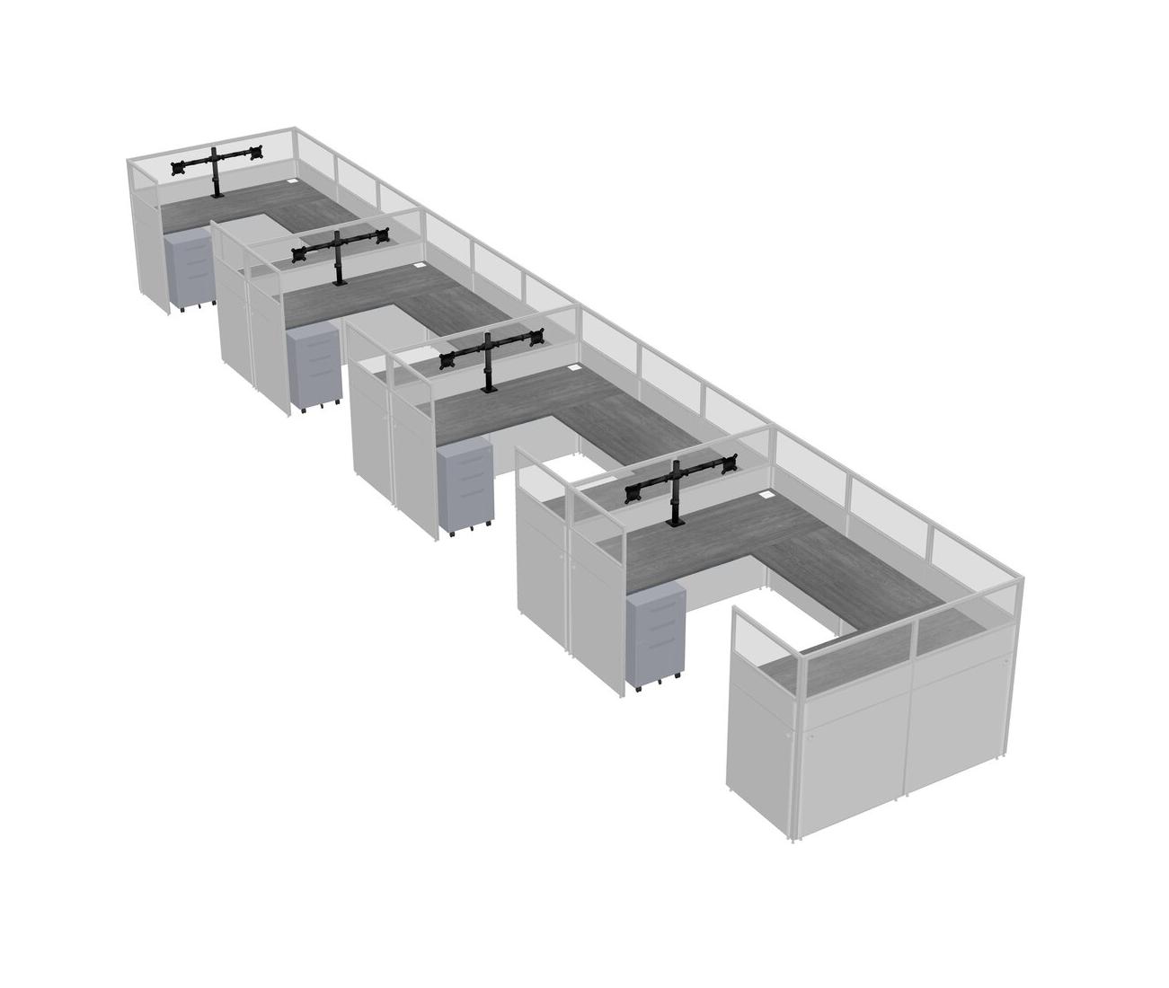 Grey U-shaped Panel System For 4 Person + Monitor Arm (double Arms) + Metal Mobile Drawers For 4 User(s)