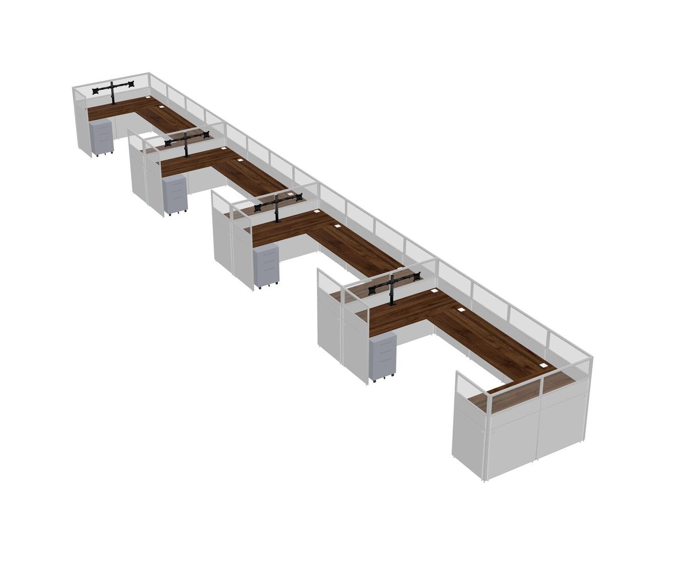 Columbia Walnut U-shaped Panel System For 4 Person + Monitor Arm (double Arms) + Metal Mobile Drawers For 4 User(s)