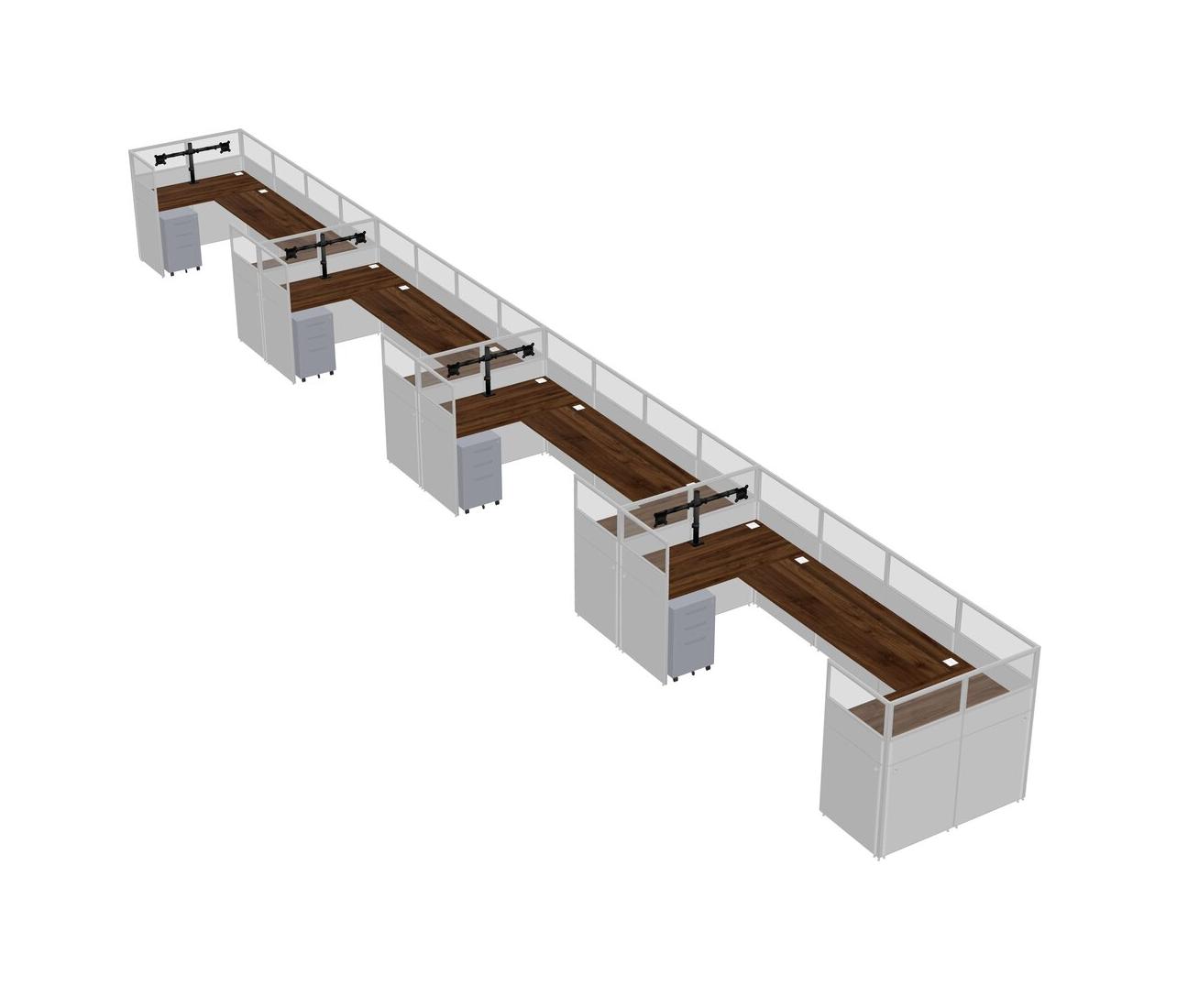 Columbia Walnut U-shaped Panel System For 4 Person + Monitor Arm (double Arms) + Metal Mobile Drawers For 4 User(s)