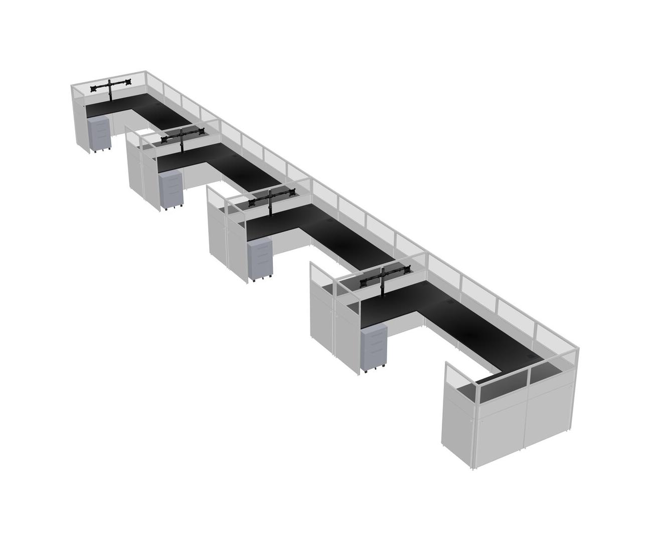 Black U-shaped Panel System For 4 Person + Monitor Arm (double Arms) + Metal Mobile Drawers For 4 User(s)