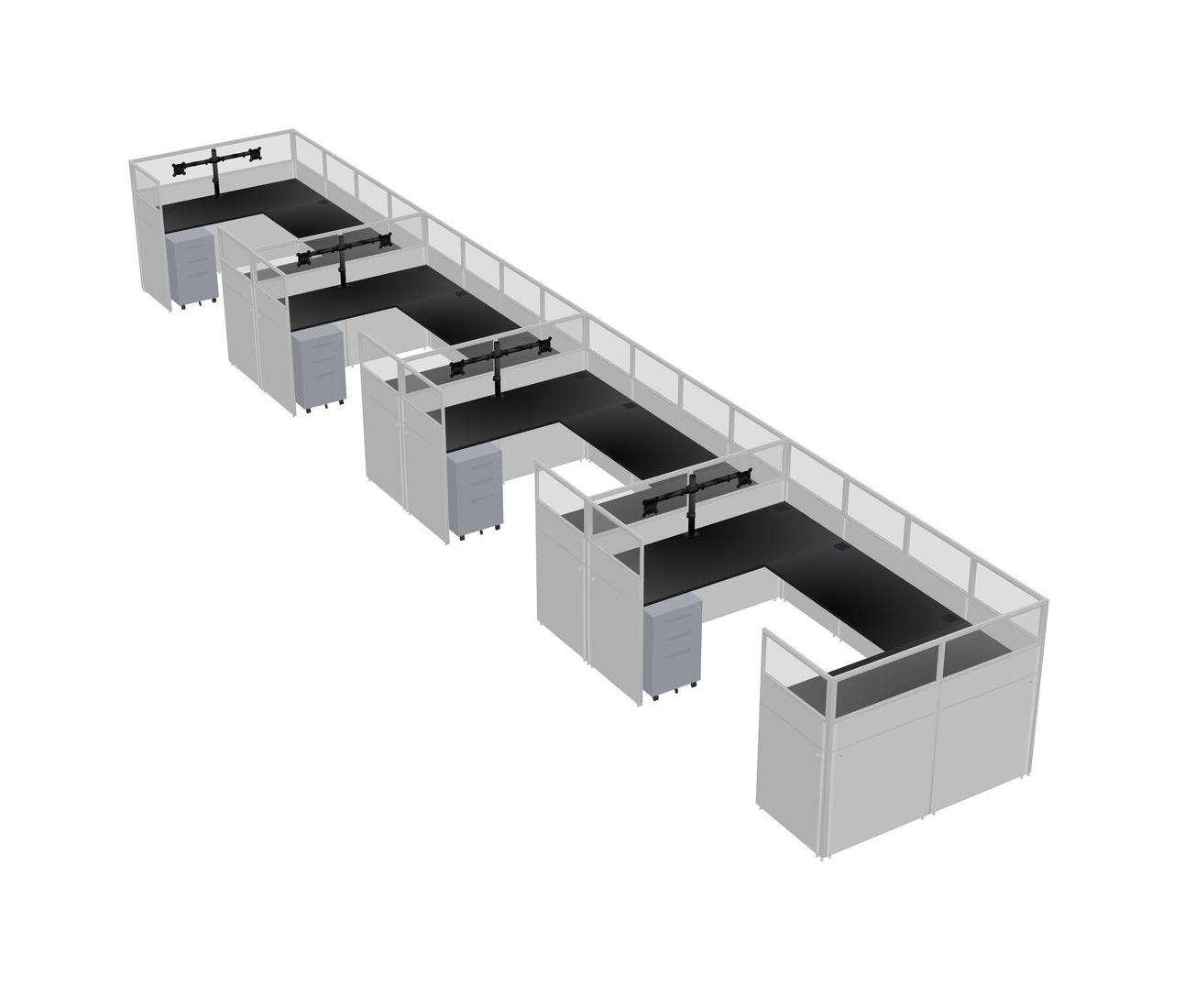 Black U-shaped Panel System For 4 Person + Monitor Arm (double Arms) + Metal Mobile Drawers For 4 User(s)