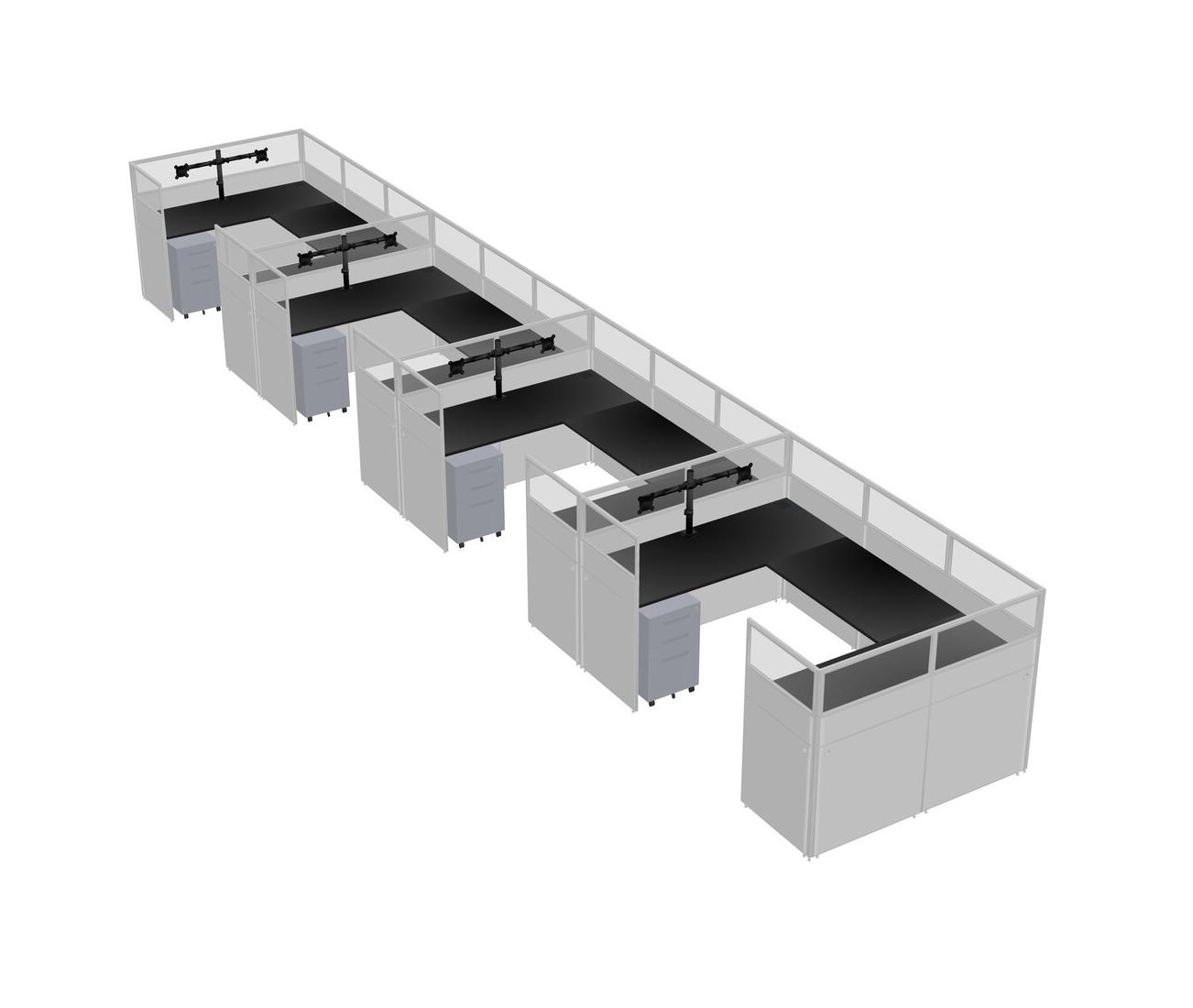 Black U-shaped Panel System For 4 Person + Monitor Arm (double Arms) + Metal Mobile Drawers For 4 User(s)