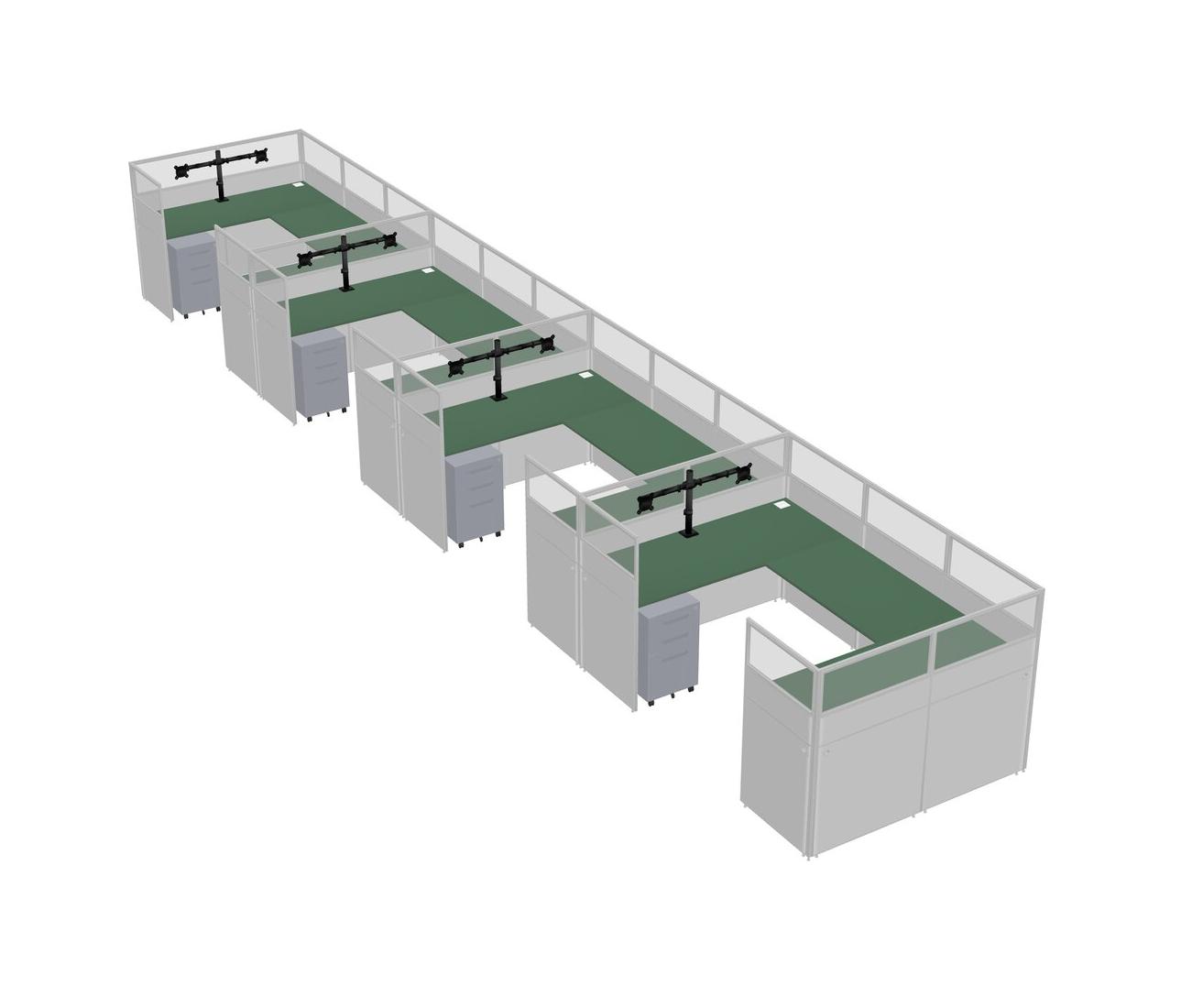 Green U-shaped Panel System For 4 Person + Monitor Arm (double Arms) + Metal Mobile Drawers For 4 User(s)