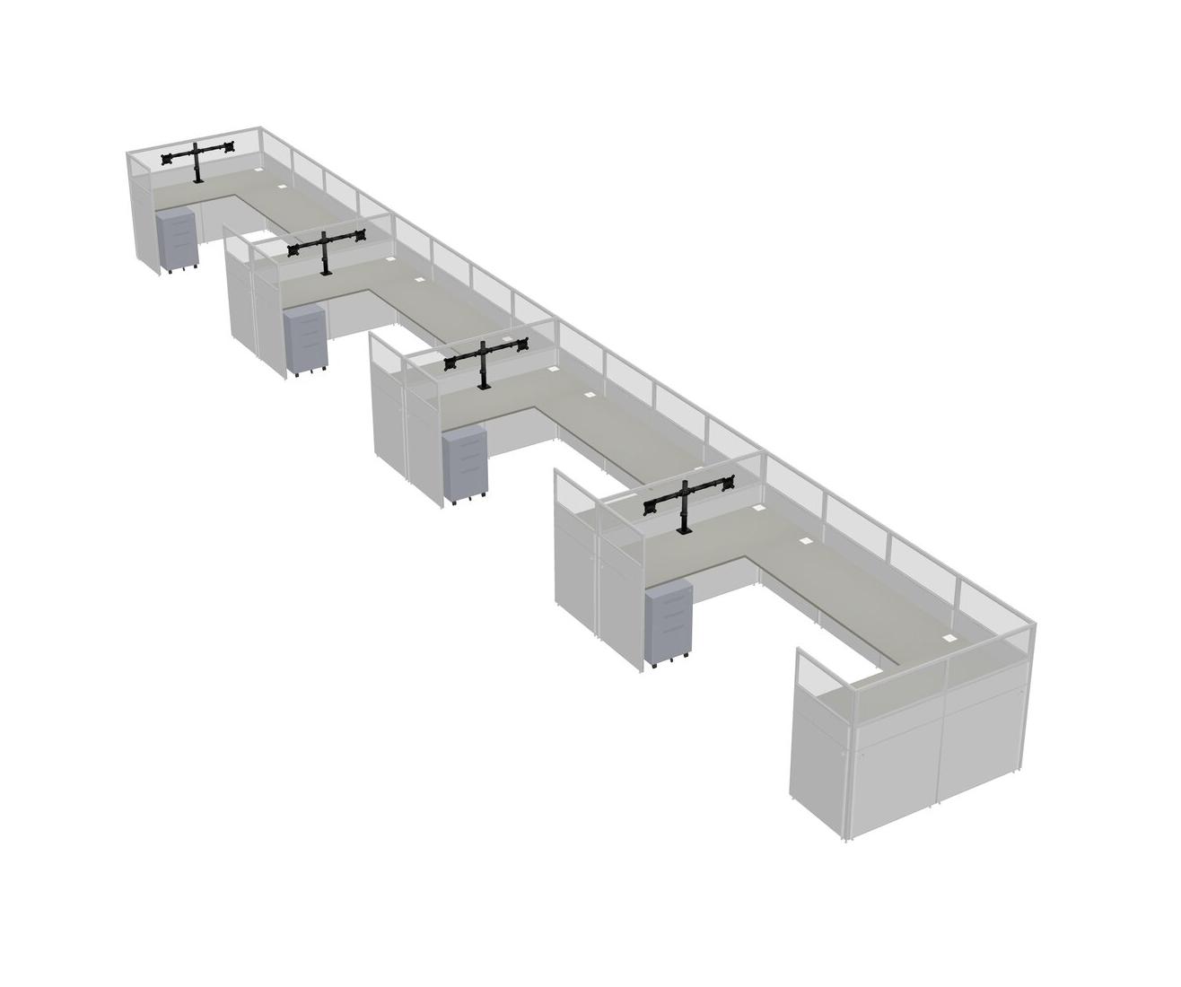 Grey Shadows U-shaped Panel System For 4 Person + Monitor Arm (double Arms) + Metal Mobile Drawers For 4 User(s)