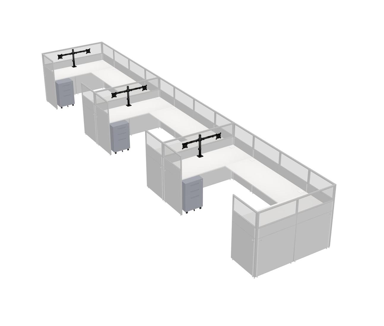 White U-shaped Panel System For 3 Person + Monitor Arm (double Arms) + Metal Mobile Drawers For 3 User(s)