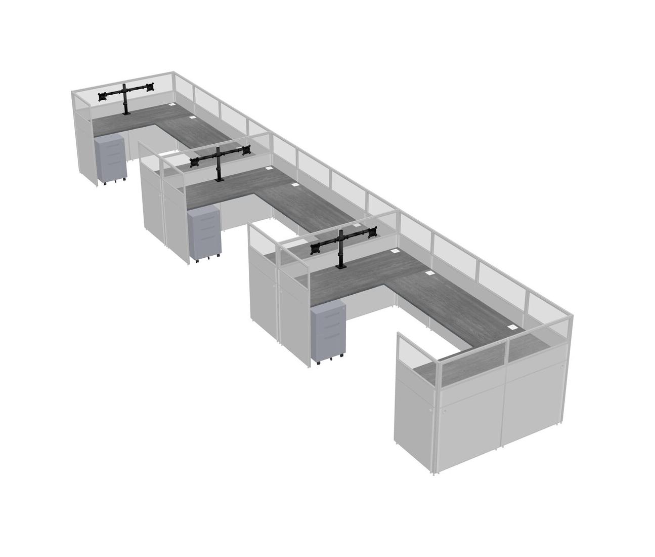 Grey U-shaped Panel System For 3 Person + Monitor Arm (double Arms) + Metal Mobile Drawers For 3 User(s)