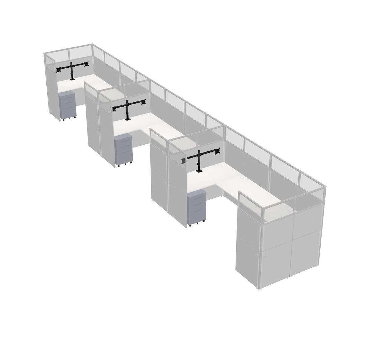 White U-shaped Panel System For 3 Person + Monitor Arm (double Arms) + Metal Mobile Drawers For 3 User(s)