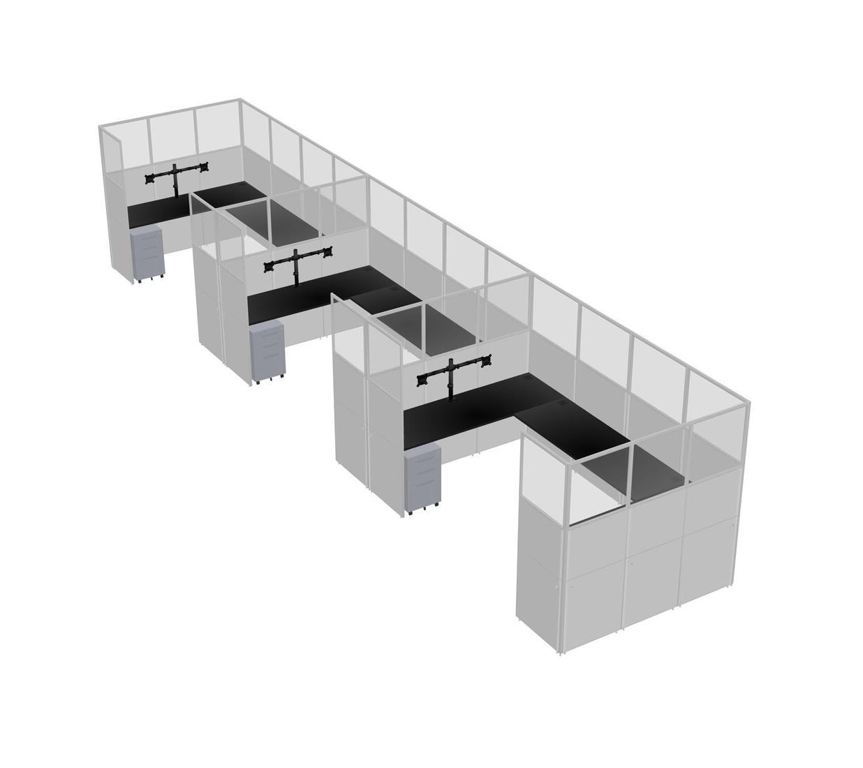 Black U-shaped Panel System For 3 Person + Monitor Arm (double Arms) + Metal Mobile Drawers For 3 User(s)